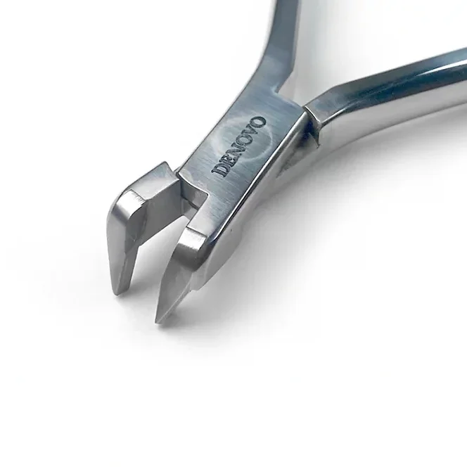 The Denovo Slim Distal End Safety Hold Cutter cleanly cuts orthodontic arch wires and securely holds distal ends. Slim handled and beaked version, sized to better fit pediatric mouths.